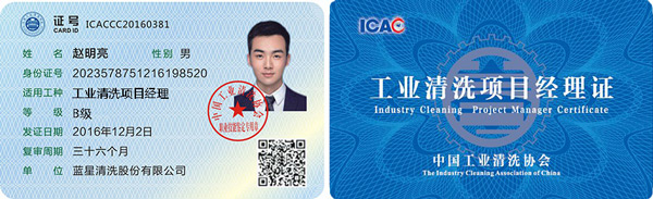 獲得證書:由中國工業清洗協會頒發的《工業清洗項目經理證》