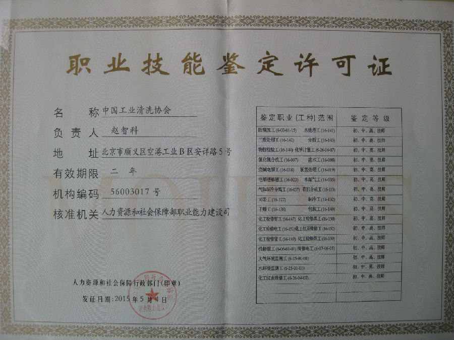 ? ?化工行業特有工種職業技能鑒定站于2003年3月10日設立,機構編碼:56003017,是經“國家勞動和社會保障部”批準設立的,受化工行業職業技能鑒定指導中心業務指導,是國內唯一鑒定“清洗腐蝕工”的職業技能鑒定站。同時也從事“水生產處理工”、“工業廢水處理工”、“分析工”、“物性檢驗工”“化工檢修管工”“化工檢修鉗工”等29個工種的職業技能鑒定。